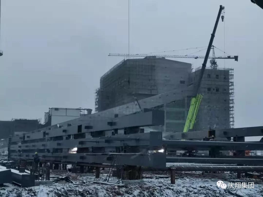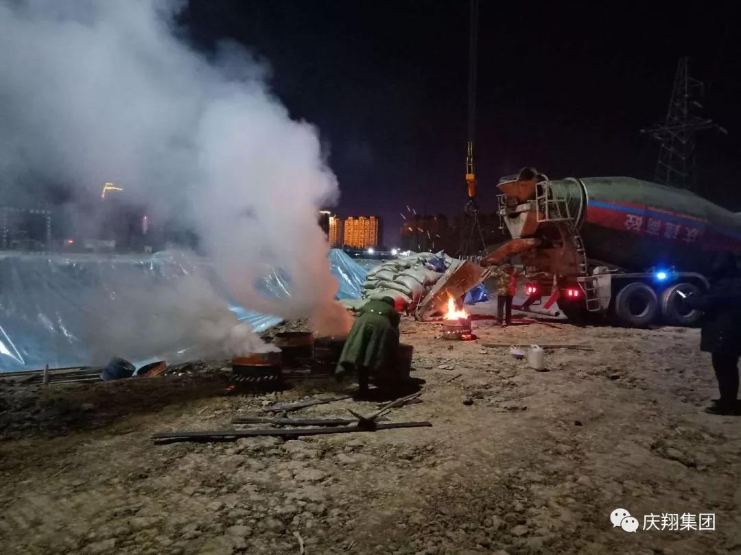 “其實,這場大雪可以說是意料之外、情理之中。我們對氣溫下降,甚至飄雪早有準備?!惫⒅纹秸f,11月15日,廠房A列澆筑完畢,這標志著整個廠房基礎(chǔ)建設完成,總計使用混凝土1100立方米。當天夜里,氣溫就驟降至零下18度。第二天,慶安項目部組織人員,迅速用稻殼、編織袋等完成了保溫措施。沒過幾天,11月18日天空洋洋灑灑飄起了雪花,“幸好保溫及時,不然下雪后就晚了。”